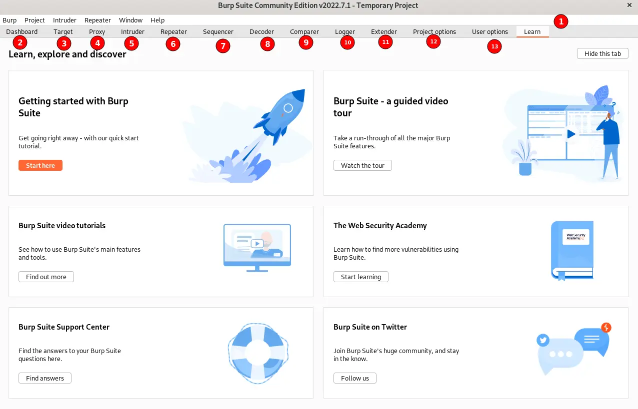 Let’s launch the BurpSuite community edition using the steps from BurpSuite Installation guide.