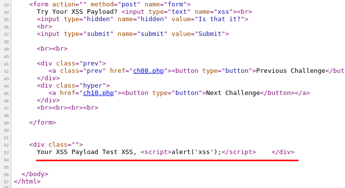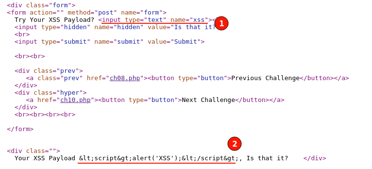 XSS Challenge 9 - Page Source Output