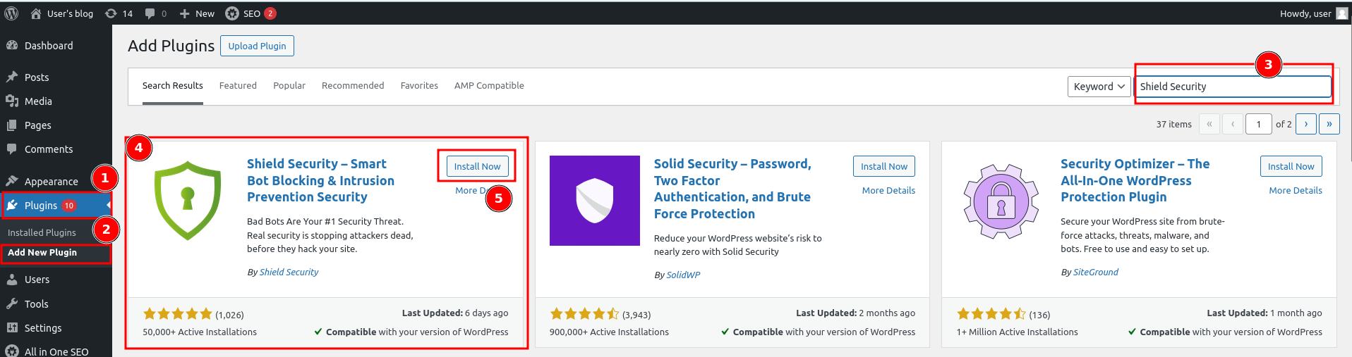 Once you find the " Shield Security" plugin, click the " Install Now" button.