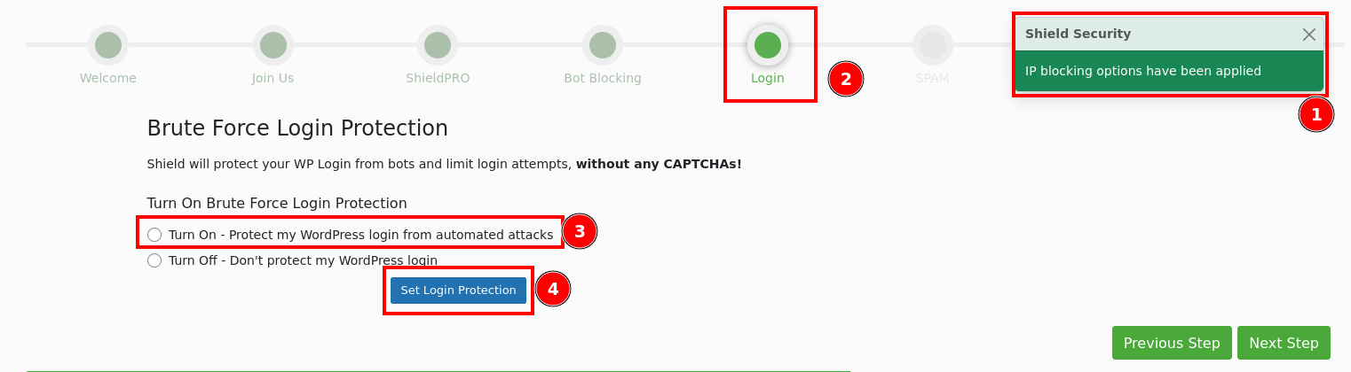 Make sure to " Turn On - Protect my WordPress login from automated attacks", click on " Set Login Protection".