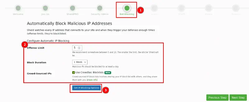 - Automatic IP Blocking: The website owner can check and set the offence count in the settings. After reaching the count, the website will automatically block all malicious traffic