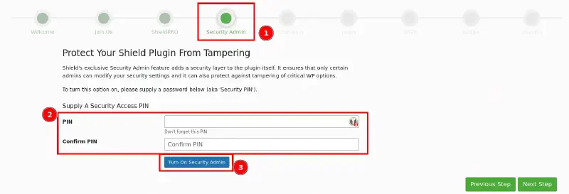 - Click on the “Next Step” to go ahead and quickly enable the security features needed.