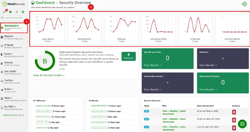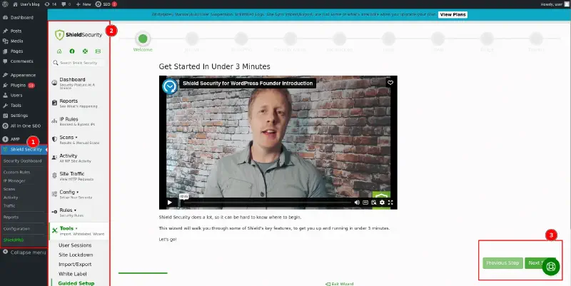 - A Shield Security menu will be displayed. Using the WordPress dashboard, you can Navigate to the Shield Security Plugin.