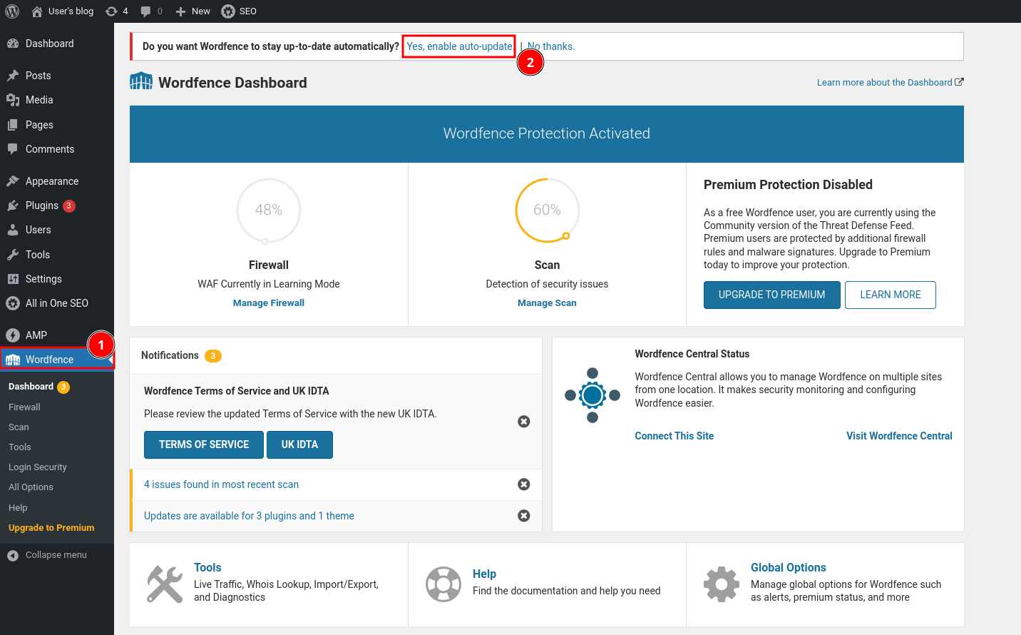 Click on the " Go to Dashboard" button, and it will take you to Wordfence Dashboard.