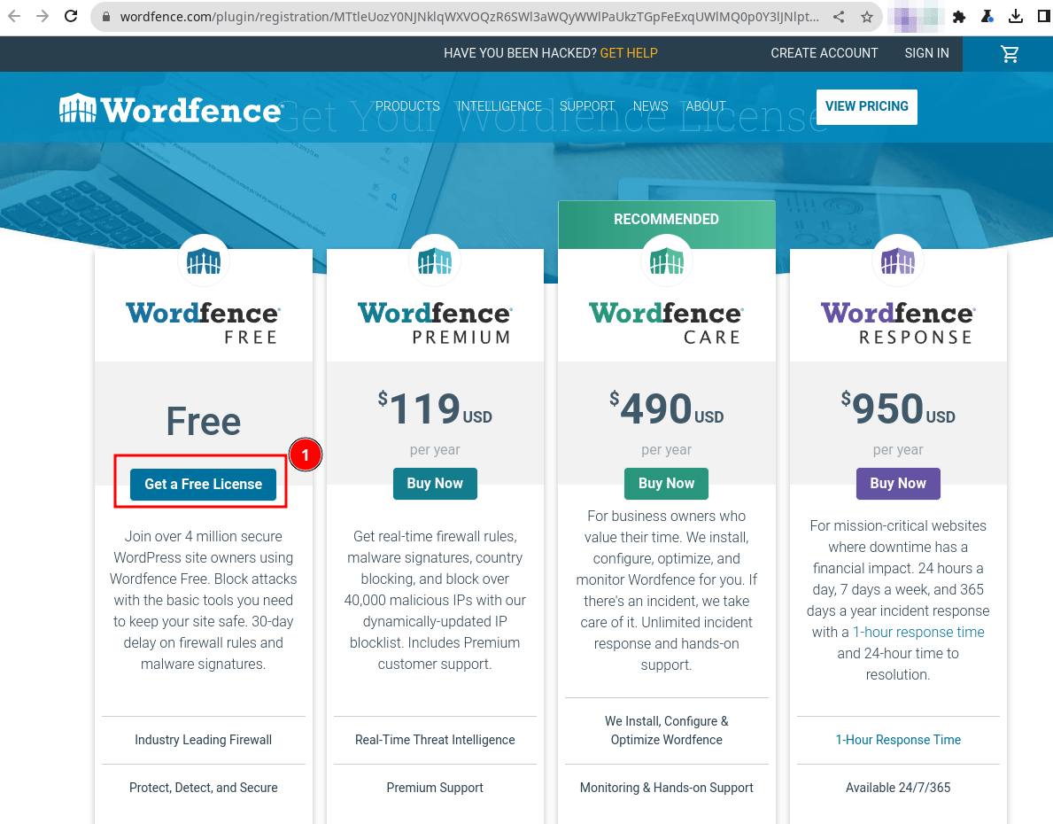 It will take you to the Wordfence website, where you can choose from the different packages offered by Wordfence.