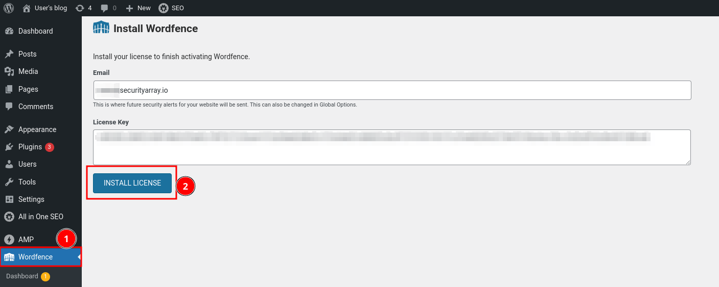 After installation, click on the " Activate" button to ensure the plugin is enabled. You will see a page stating that the plugin has been successfully installed and requesting that you " Get your Wordfence license."