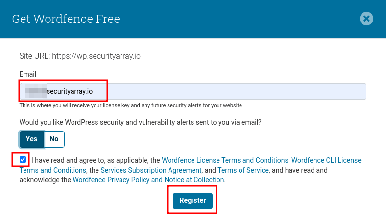 Even to access the free features of Wordfence, we need to register with a valid email address to get the activation code.