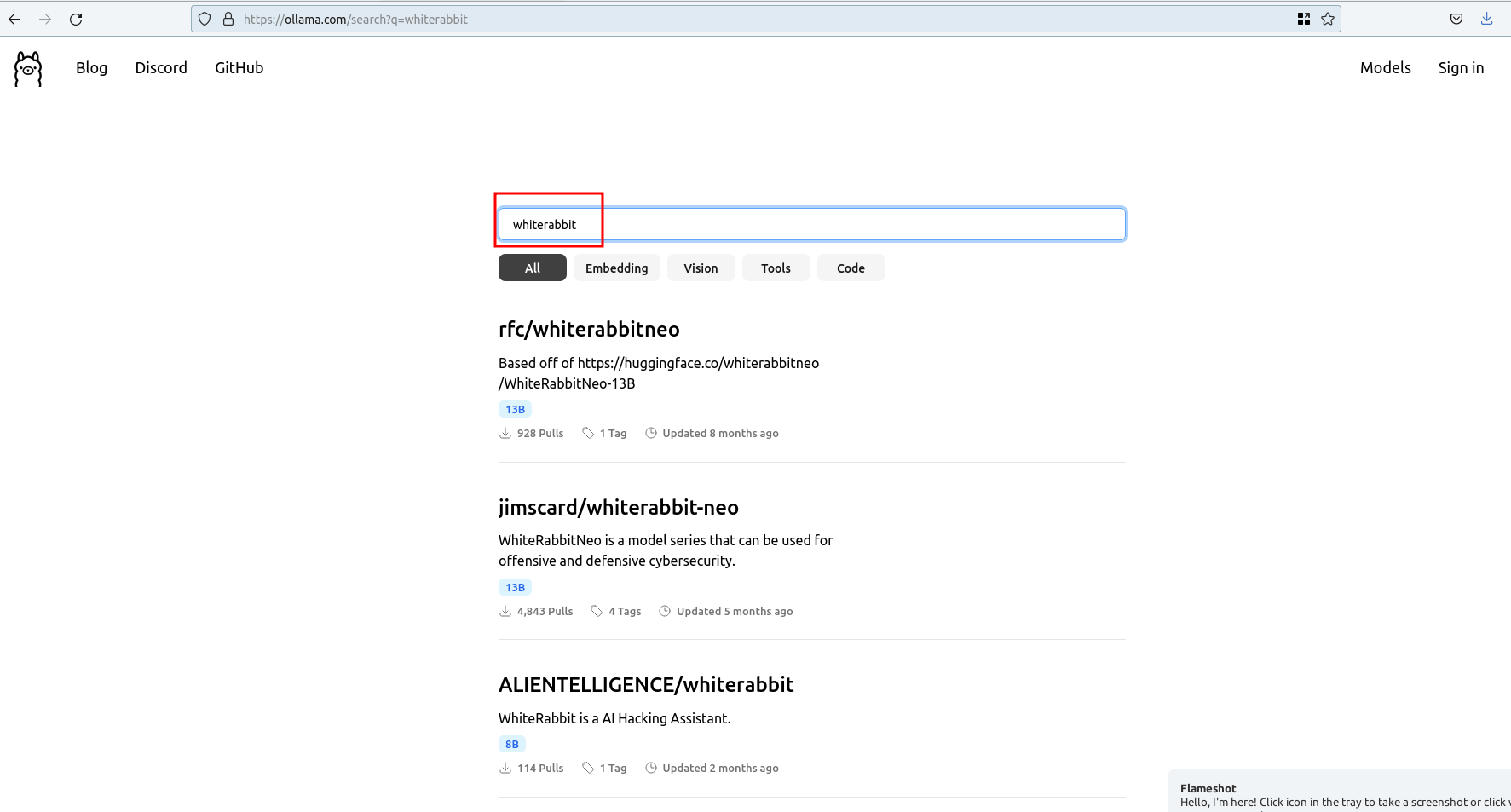 whiterabbitneo:latest b4a1b0b0cd9e 4.9 GB About a minute ago