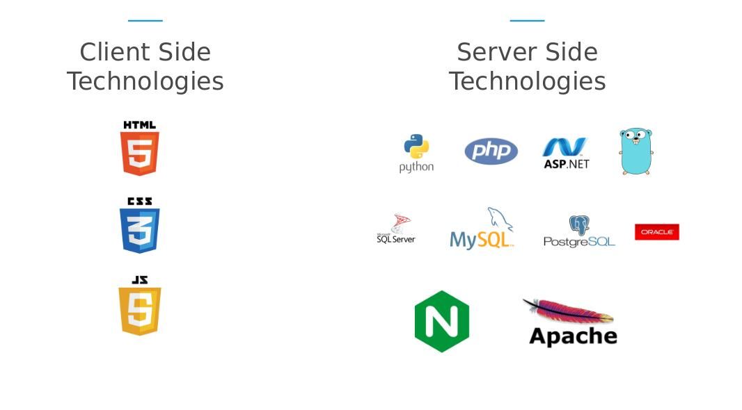 In the screenshot above, we highlighted a few programming languages like Python, PHP, Golang, etc., but there are many more server-side technologies. These high-level programming languages run on the server, process data, and format the data into a format the client can understand.