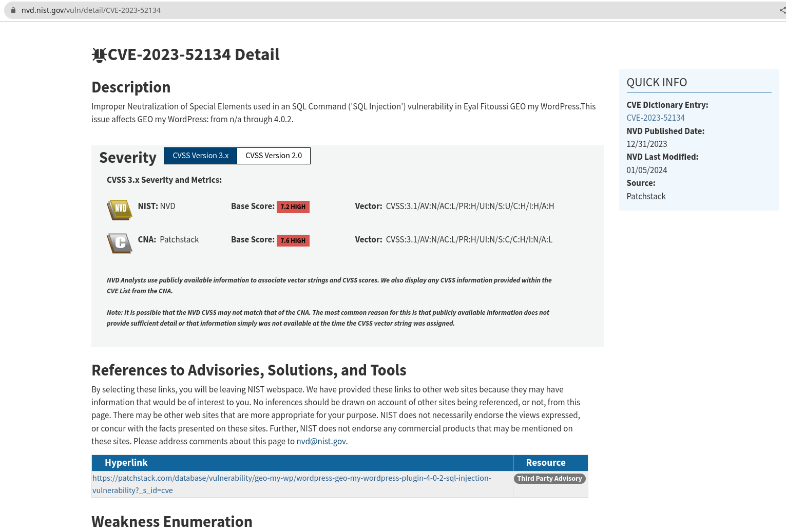 | - https://www.wordfence.com/threat-intel/vulnerabilities/id/3ebfc9f5-abb7-47bc-bd38-f60df1cccb5d
