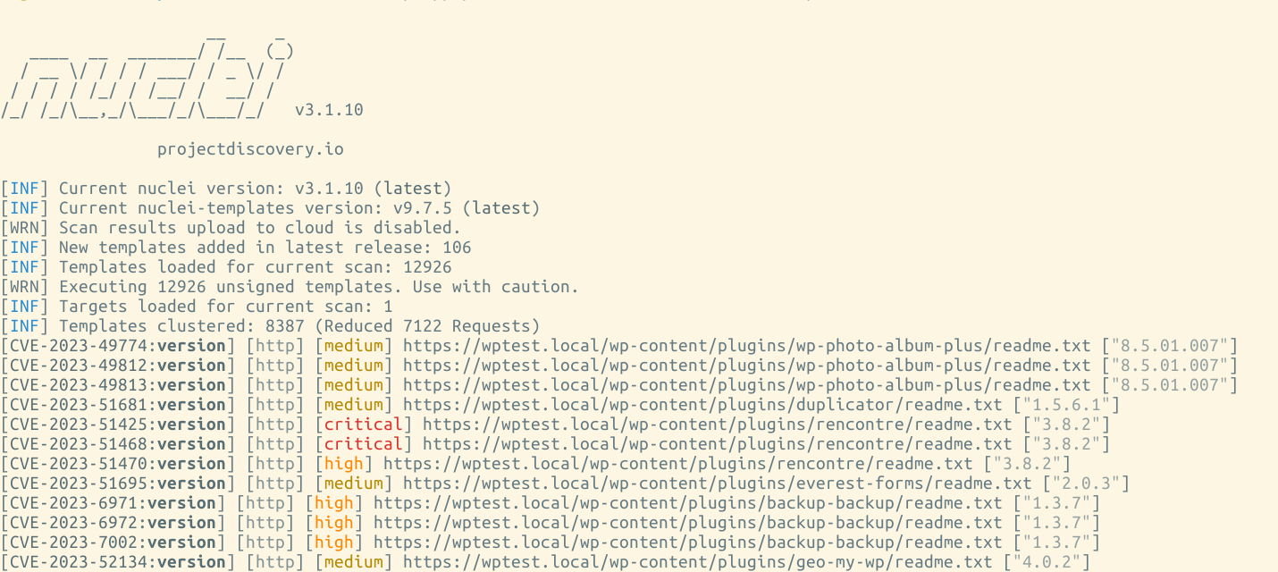 nuclei -u https://wptest.local -o results.txt -tags wordpress